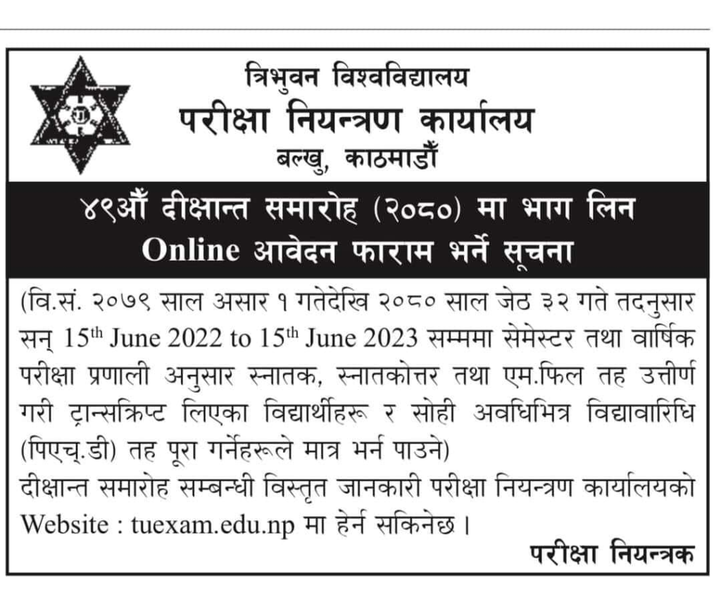यस्ताे छ ४९औँ दीक्षान्त समारोह (२०८०) मा भाग लिन Online आवेदन फाराम भर्ने सूचना