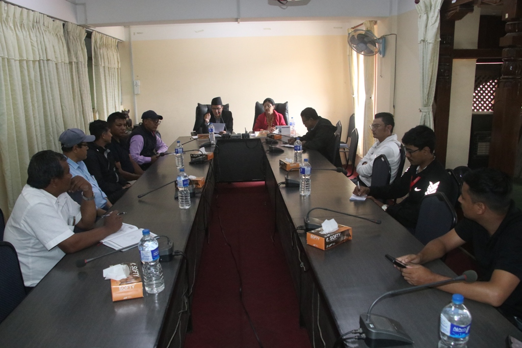 भदौ ६, भक्तपुर नगरपालिकाका प्रमुख सुनिल प्रजापतिको अध्यक्षतामा २०८० सालको प्रसिद्ध गाईजात्रा (सापारु) पर्वलाई व्यवस्थित र मर्यादित रुपमा सम्पन्न गर्न गाईजात्रा प्रदक्षिणा मार्गमा रहेका विद्युत, टेलिफोन, इन्टरनेट र केबुल नेटवर्कका तारहरू व्यवस्थित गर्ने विषयमा बुधबार सम्बन्धित सरोकारवालाहरूको बैठक बस्यो ।
