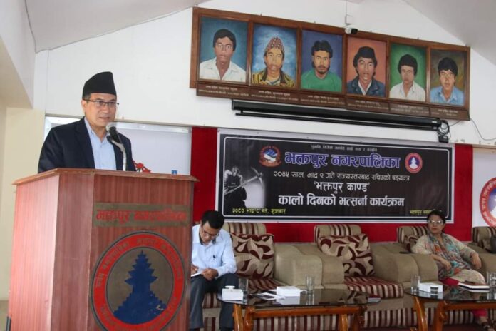 भक्तपुर नगरपालिकाको आयोजनामा २०४५ साल भाद्र ९ गते राज्यस्तरबाट रचिएको षड्यन्त्र’भक्तपुर काण्ड’कालो दिनको भत्सर्ना कार्यक्रम भाद्र ८ गते शुक्रवार नगरपालिकाको सभाकक्षमा सम्पन्न भयो ।