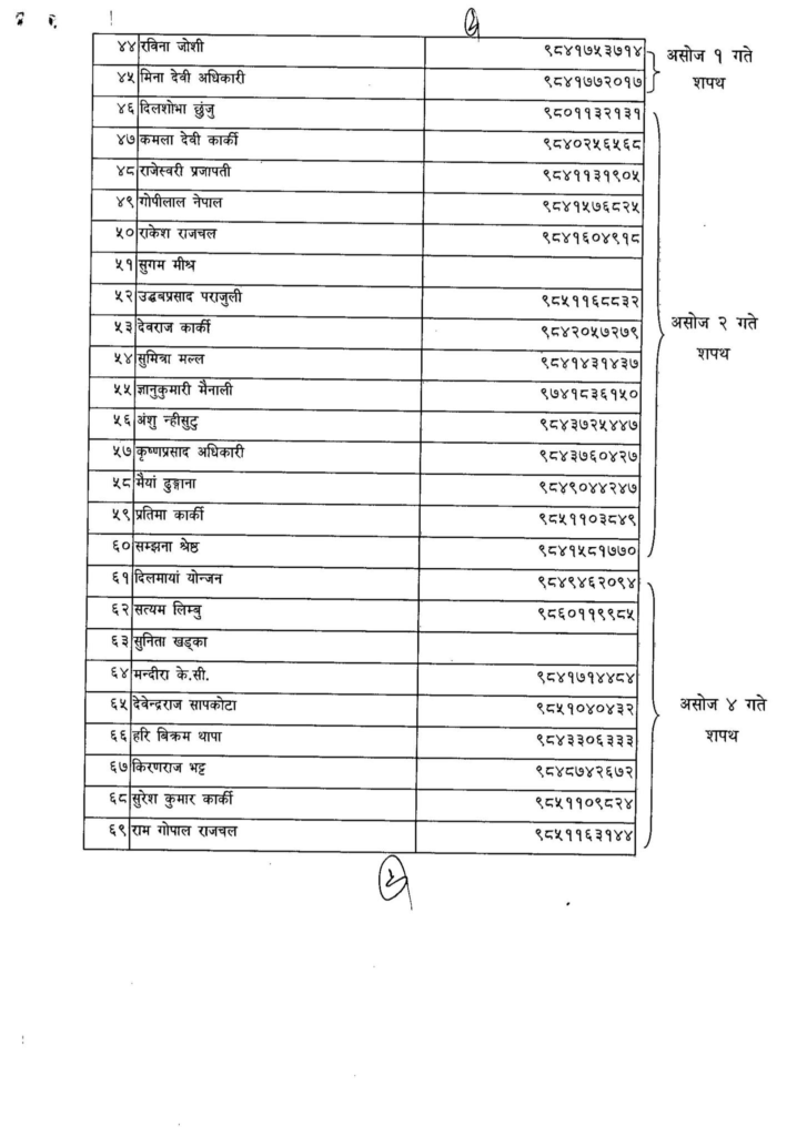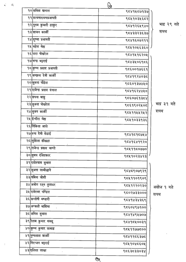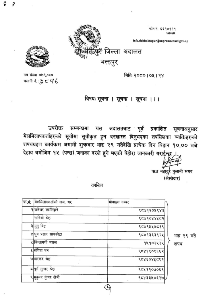 यस्ताे छ ६९ जना मेलमिलापकर्ताहरुको सूची