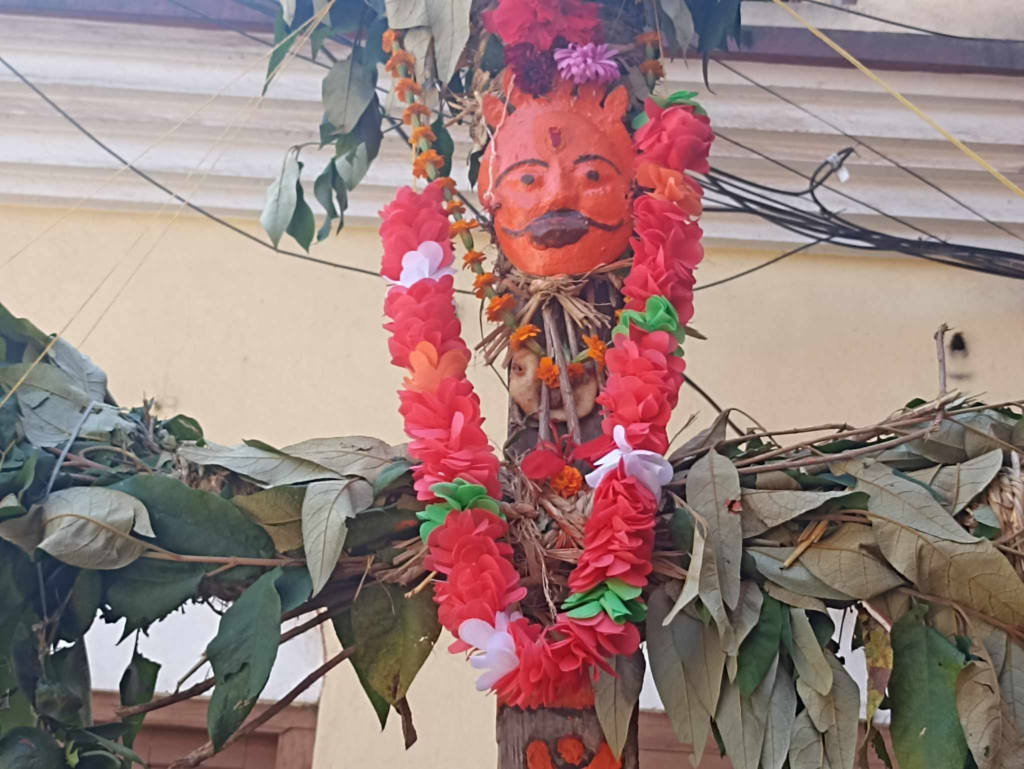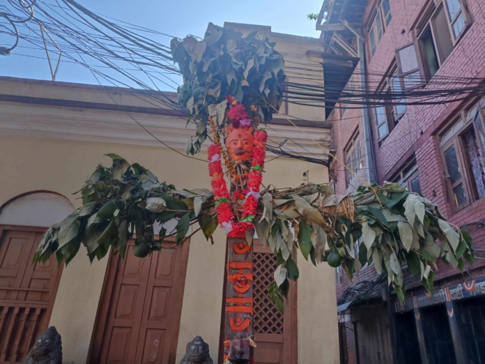 इन्द्रजात्राको अवसरमा आज भक्तपुरको टोल टोलमा इन्द्रको मूर्ति स्वरुप सानो लिङ्गो ठडयाइयो । प्रत्येक वर्ष भाद्र शुक्ल द्वादशीको दिनमा भक्तपुरमा इन्द्रको मूर्ति स्वरुप लिङ्गो उठाउने प्रचलन रहेको छ । यसरी ठडयाइएको लिङ्गोलाई नेवारी भाषामा यमद्याे: भनिन्छ ।