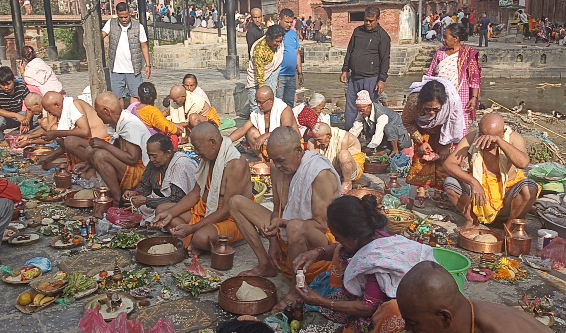 असोज २७ गते, भक्तपुर । भक्तपुरको पवित्र तीर्थस्थल हनुमानघाटमा शनिबार सोह्रश्राद्ध गर्नेको घुइँचो लागेको छ। आश्विन कृष्णपक्ष सुरु भएसँगै १६ दिनसम्म गरिने श्राद्धको अन्तिम पितृपक्षका दिन दिवंगत भएका आफन्तहरूको नाममा पिण्डदान गर्नेको घुइँचो छ।