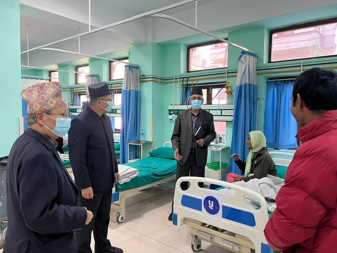कार्तिक ६, भक्तपुर । नेपाल मजदुर किसान पार्टीका अध्यक्ष कामरेड नारायणमान बिजुक्छें (रोहित) ले आज बिहान भक्तपुर नगरपालिकाद्वारा संचालित ख्वप अस्पताल च्याम्हासिंह र ब्रम्हायणीमा निरीक्षण गर्नुभयो।इमर्जेन्सी वार्ड, प्रयोगशाला तथा विभिन्न वार्डहरू पुगी सेवाग्राही, विरामी, नर्स, चिकित्सक आदिसॅंग कुराकानी गर्नुभयो।चाडवाडमा अझ बढी सेवा भरपर्दो तरिकाले दिनुपर्ने अध्यक्ष रोहितले बताउनुभयो। उहांले अस्पतालले प्रदान गर्दै आएको सेवा तथा सुविधा, प्राबिधिक पक्ष आदिबारे जानकारी लिनुभयो। अध्यक्ष रोहितले जनताका गुनासालाई बेलैमा सम्वोधन गर्न सुझाव दिनुभयो।
