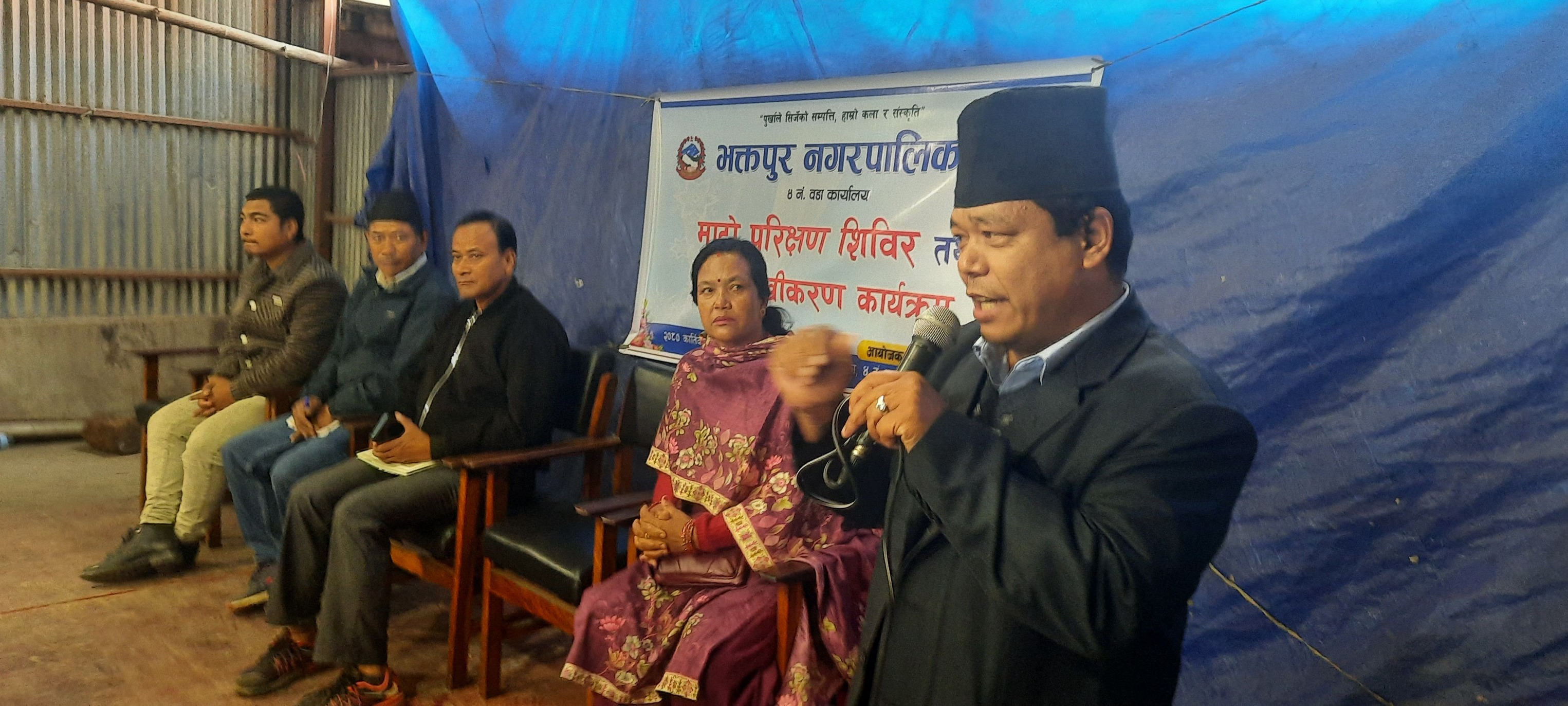 उक्त शिविर कार्यक्रमका प्रमुख अतिथि भक्तपुर नगरपालिका कृषि समितिका संयोजक तथा भक्तपुर नगरपालिका ३ नं. वडाका वडा अध्यक्ष श्री राजकृष्ण गोराले हाम्रो स्वास्थ्यमा रोग लाग्दा खेरी हामी अस्वस्थ भई काम गर्न सक्दैन भन्ने जस्तै माटोमापनि रोग लाग्दा हामीले भने जस्तै बाली उत्पादन गर्न सक्दैन । माटोलाई पनि परीक्षण गरि उपचार गरे मात्र हामीले आशा गरे जस्तो बाली उत्पादन गराउन सकिन्छ । हामीले रासायनिक मलको लागि परनिर्भर हुनु परेका कारण भक्तपुर नगरपालिकाले कम्पोष्ट मल उत्पादन गरि प्रति बोरा रु.३५०/- ले वडा र सहकारीहरुबाट कृषकहरुलाई वितरण गरिरहेको कुरा जानकारी गर्नु भयो भन्ने कृषि विशेषज्ञ रवि ख्याजूले माटो परीक्षण गर्नु पर्ने कारणहरु बारे र माटो परीक्षण गर्न खेतको आकार अनुसार माटो निकाल्ने तरिका परीक्षण पश्चात आवश्यक उपचार गर्नु पर्ने बारे जानकारी गराउनु भयो ।