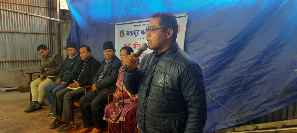 उक्त कार्यक्रममा भक्तपुर नगरपालिका ४ नं. वडा कृषि समितिका संयोजक कृष्ण सुन्दर प्रजापतिले स्वागत मन्तव्य र पूर्व वडा सदस्य राजेन्द्र माकले सञ्चालन गर्नु भयो ।
