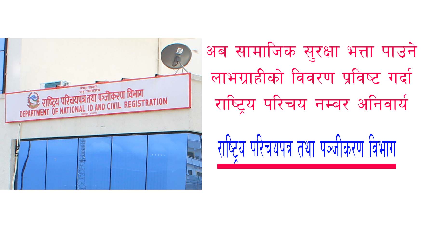 मंसिर २२,भक्तपुर । सामाजिक सुरक्षा भत्ता वितरण प्रणालीलाई त्रुटीरहित बनाउन सरकारले अबदेखि राष्ट्रिय परिचय नम्बर अनिवार्य राख्नुपर्ने निर्णय गरेको छ ।