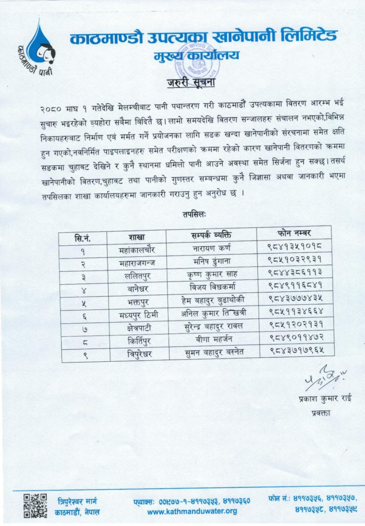 बुधबारदेखि लागु हुने गरी केयूकेएलले नयाँ तालिका ल्याएको हो ।