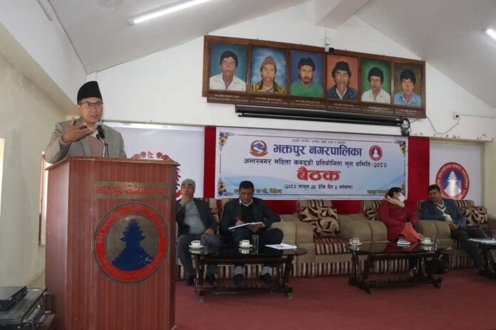 भक्तपुर नगरपालिकाका प्रमुख सुनिल प्रजापतिको अध्यक्षतामा भक्तपुर नगरपालिकाको आयोजना २०८० फागुन २९ गतेदेखि चैत्र ३ गतेसम्म हुने अन्तरनगर महिला कबड्डी प्रतियोगिता २०८० मूल समितिको बैठक आज सम्पन्न भयो ।