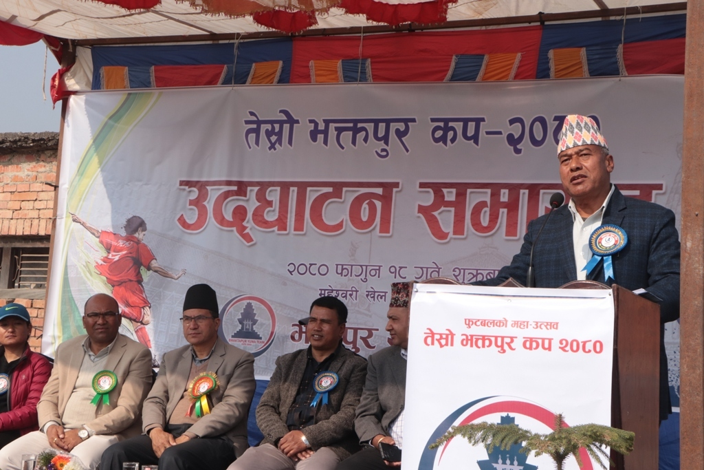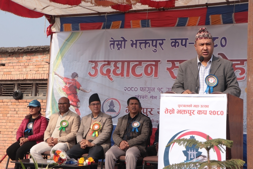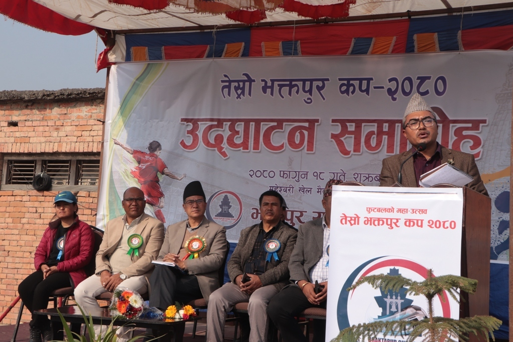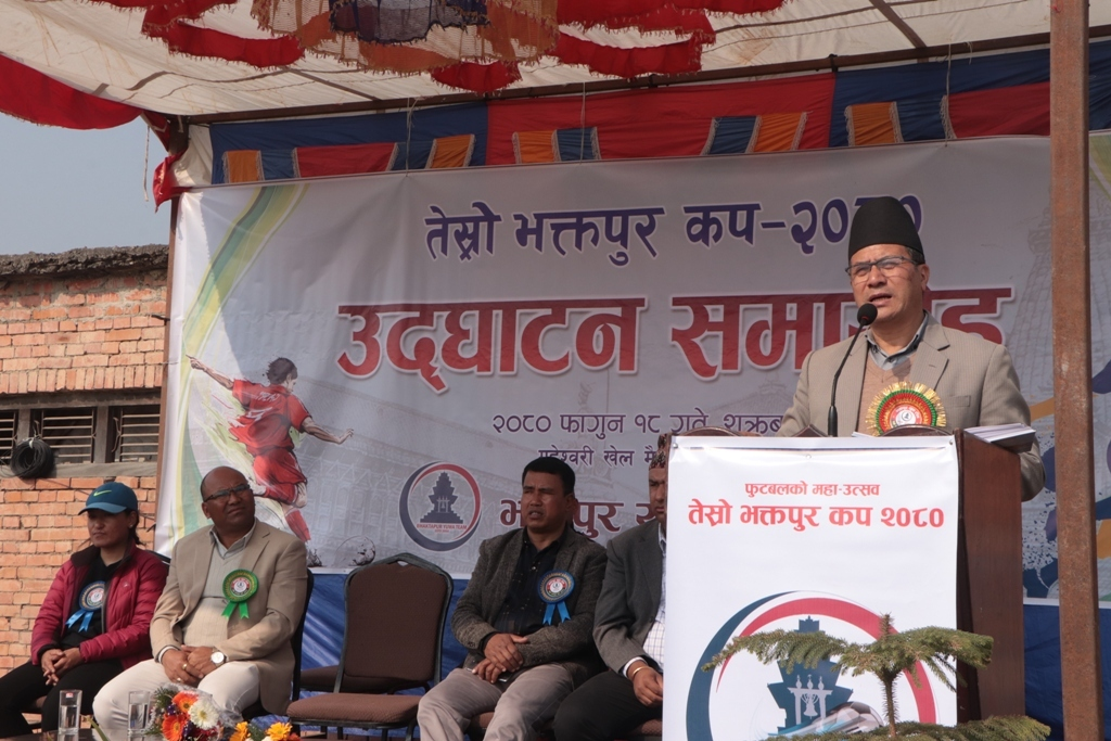 फागुन १८,भक्तपुर । भक्तपुर नगरपालिकाका प्रमुख सुनिल प्रजापतिले भक्तपुर युवा टीमको आयोजनामा २०८० फागुन १९ गतेबाट सञ्चालन भएको भक्तपुर कप फुटबल प्रतियोगिताको शुक्रबार एक कार्यक्रमबीच उद्घाटन गर्नुभयो ।