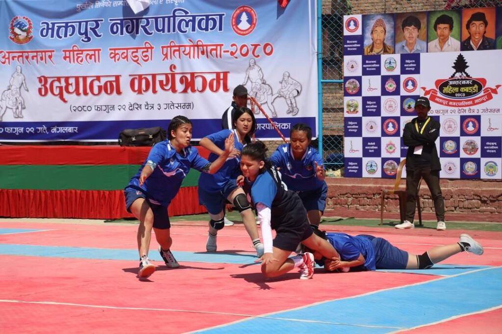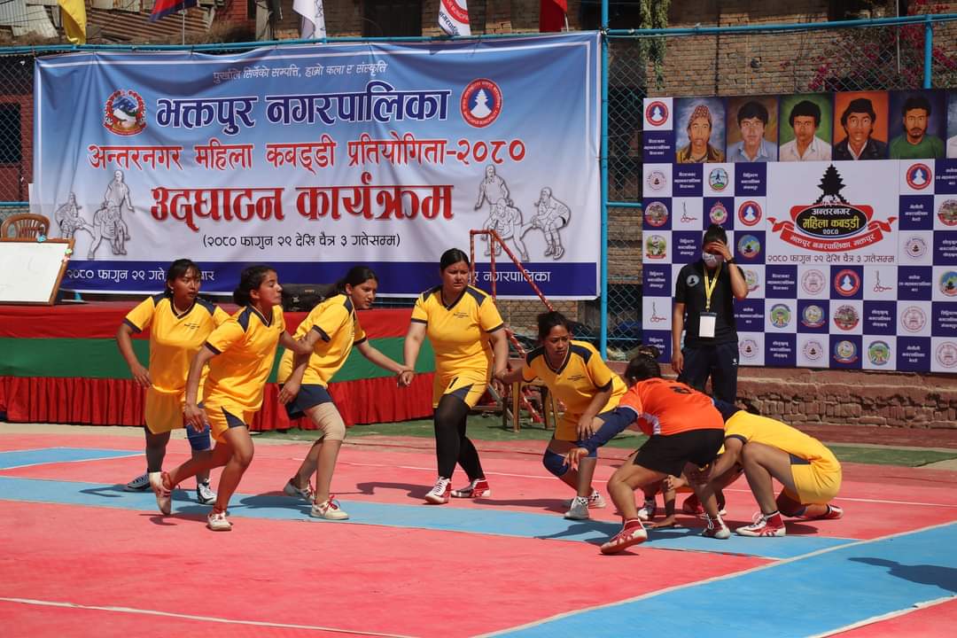 फागुन ३०, भक्तपुर । भक्तपुर नपाको आयोजनामा फागुन २९ गतेबाट सुरु भएको महिला कबड्डी प्रतियोगिता अन्तर्गत बुधबार विराटनगर महानगरपालिका र बुटवल उप महानगरपालिकाविच भएको खेलमा बुटवल उप महानगरपालिकाले विराटनगर महानगरपालिकालाई ६४-२२ अंकले पराजित गरेको छ । उक्त खेलमा बुटवल उप महानगरपालिकाका विष्णु सोमरी मगर म्यान अफ द म्याच घोषित भएका छन् ।