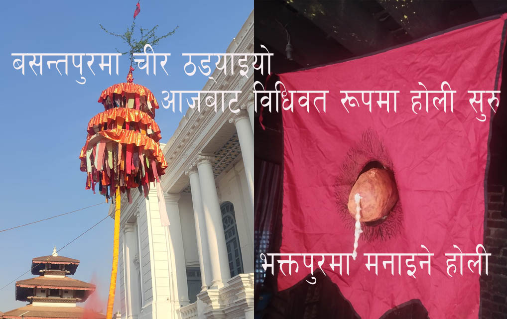काठमाडौं- काठमाडौँको वसन्तपुर अगाडि विधिवत् रूपमा आज बिहान चीर ठड्याइएको छ । फागुन शुक्ल अष्टमीका दिन हनुमानढोका दरबारको गद्दी बैठकको दक्षिणतर्फ चीर ठड्याइपछि राजधानी लगायत मुलुकभर औपचारिक रूपमा फागु अर्थात् होली पर्व सुरु भएको मानिन्छ ।