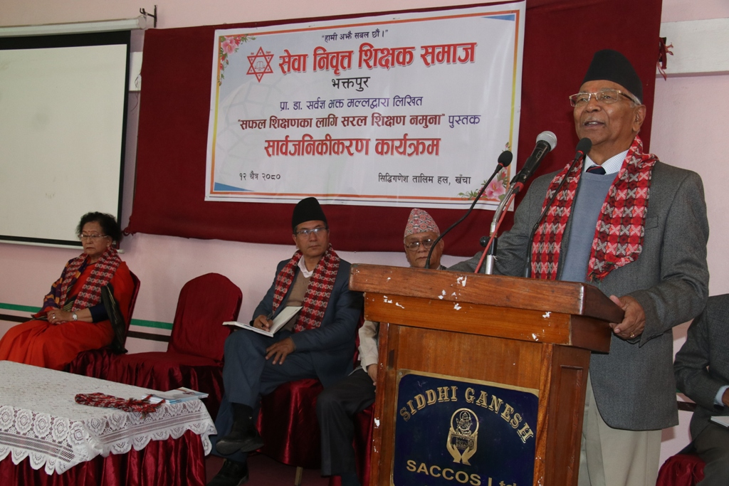 कार्यक्रमका सभापति एवम् सेवा निवृत्त शिक्षक समाज भक्तपुरका अध्यक्ष अम्बिकामान मानन्धरले पुस्तक प्रकाशन गर्ने अवसर प्राप्त भएकोमा लेखकप्रति समाजको तर्फबाट आभार प्रकट गर्नुभयो ।