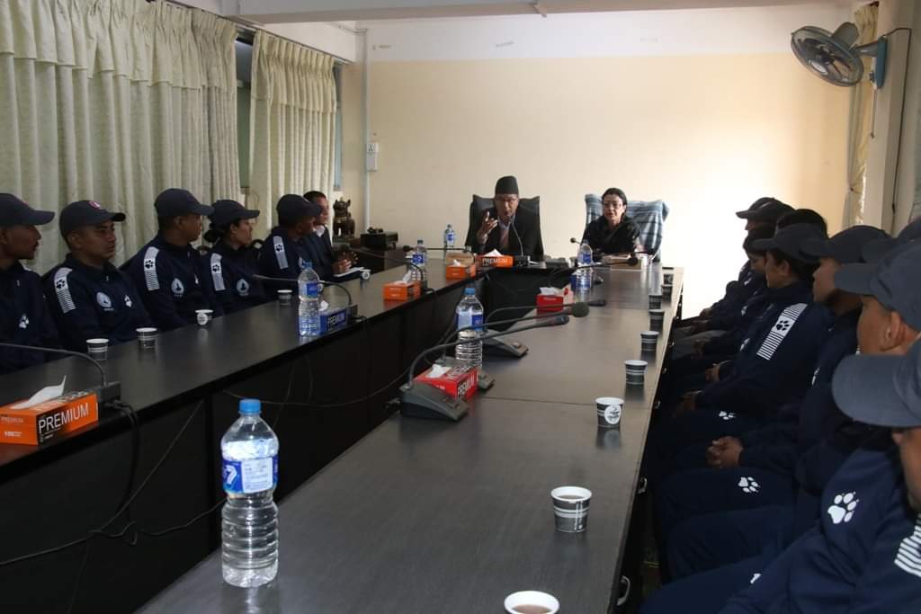 नगर प्रहरीको काम नगरपालिकासँग प्रत्यक्ष सरोकार भएको विषय हो र नगर प्रहरीले असल व्यवहार, बोलीबचन, अनुशासित र इमानदारिताका साथ काम गर्न प्रमुख प्रजापतिले प्रेरित गर्नुभयो ।