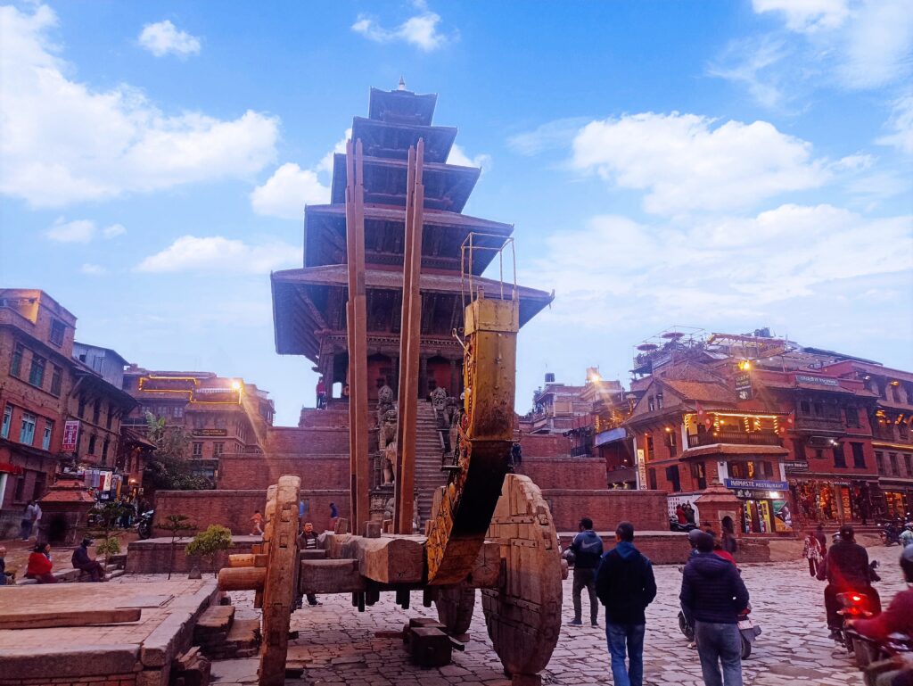 बिस्काः जात्राका लागि टौमढीस्थित प्रसिद्ध ङातापोल्हँ (पाँचतल्ले) मन्दिर प्रांगणमा भैल खः बनाउन सुरु गरिएको हो ।