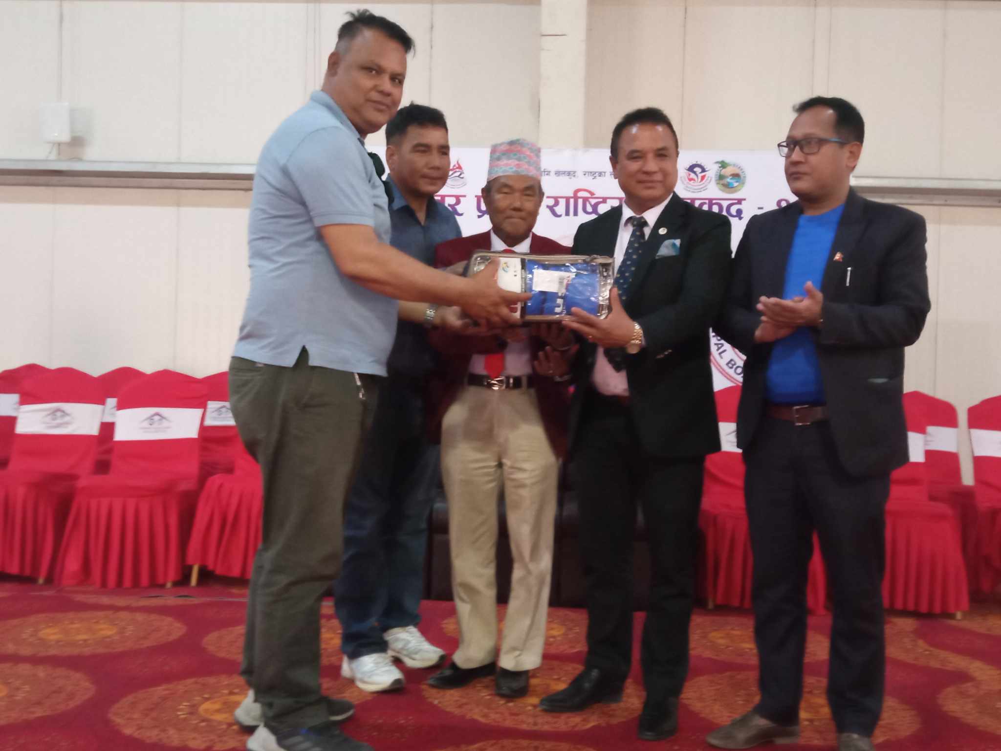 प्रथम अन्तर प्रदेश खेलकुद प्रतियोगिता अन्तर्गत बक्सिङ्ग प्रतियोगिता नेपाल बक्सिङ्ग महासंघका अध्यक्ष राम अवालेले टेक्नीकल संयोजक सविन भट्टाचार्यलाई ग्लोब्स हस्तान्तरण गरि उद्घाटन चितवन उद्योग संघको हलमा एक समारोह बिच गर्नु भयो ।