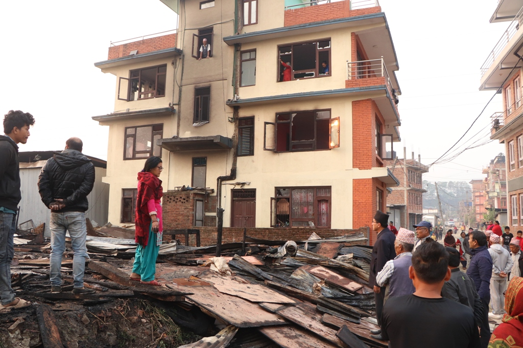 भक्तपुर नगरपालिका वडा नं. २ स्थित सानो ब्यासीको तुमर्चास्थित फर्निचर कारखानामा भएको आगलागी प्रभावित क्षेत्रको भक्तपुर नगरपालिकाका प्रमुख सुनिल प्रजापतिले स्थलगत निरीक्षण गर्नुभई आगलागी पीडितलाई भेटेर सहानुभूति व्यक्त गर्नुभयो ।
