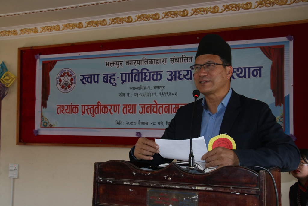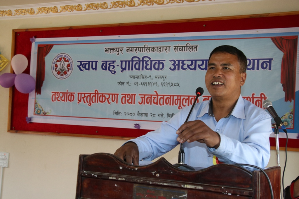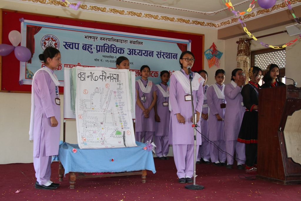 उक्त एक महिने सामुदायिक अध्ययनका क्रममा संकलित विभिन्न स्वास्थ्यसम्बन्धी तथ्यांक प्रस्तुतीकरण तथा जनचेतनामूलक नाटक प्रदर्शनी कार्यक्रम बिहीबार भक्तपुर नगरपालिकाका प्रमुख सुनिल प्रजापतिको प्रमुख आतिथ्यमा सम्पन्न भयो ।
