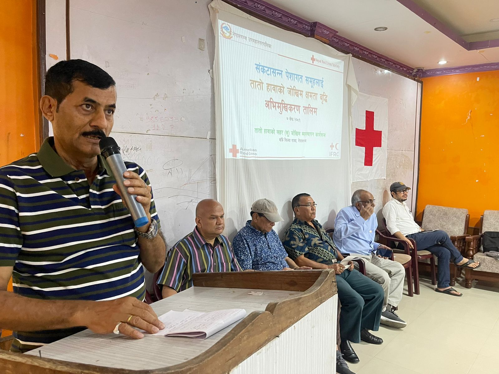 नेपाल रेडक्रस सोसाइटी र अमेरिकन रेडक्रसको सहकार्यमा नेपालगंज उपमहानगरपालिकाको समन्वयमा नेपालगंजमा संचालित तातो हावाको लहर लु प्रतिकार्य कार्यक्रमद्वारा उक्त तालिम दिइएको हो ।