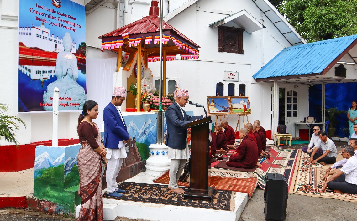 यांगौं , जेठ १० । म्यान्मारस्थित नेपाली राजदूतावासले २५६८ औं बुद्ध जयन्तीको अवसरमा दूतावास प्राङ्गणमा भगवान् गौतम बुद्धको मूर्तीको प्राण प्रतिष्ठा गरेको छ । यांगौंस्थित वनारसी नेपाली विहारका नौ जना भिक्षुहरुलाई आमन्त्रण गरि प्राण प्रतिष्ठा गरिएको हो ।