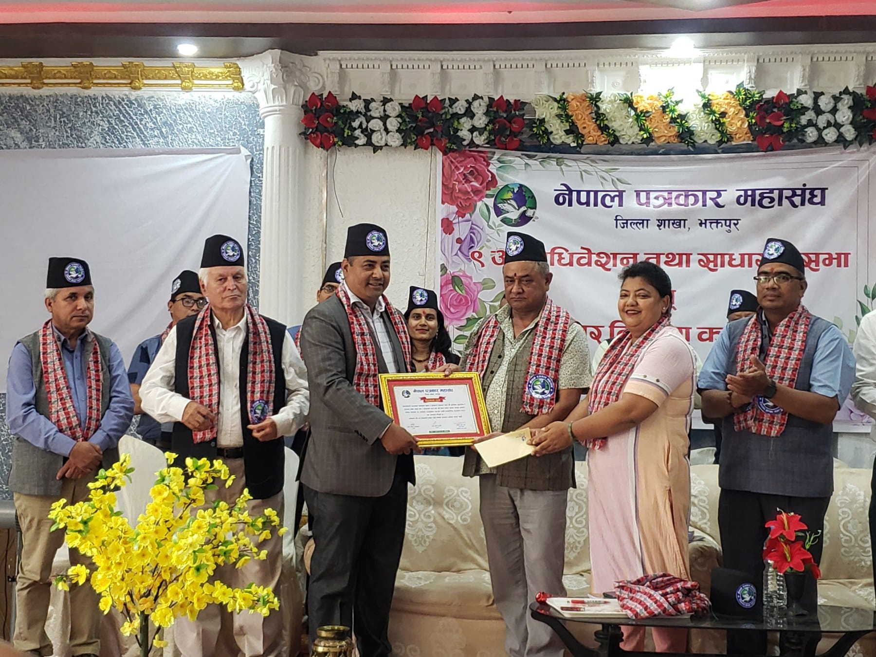 नेपाल पत्रकार महासंघ, भक्तपुर शाखाको शनिवार सम्पन्न ९औं अधिवेशन तथा साधारण सभाले राजधानी दैनिकका पूणर्भक्त दुवालसहित ४ जना पत्रकारलाई सम्मान गरिएको छ ।