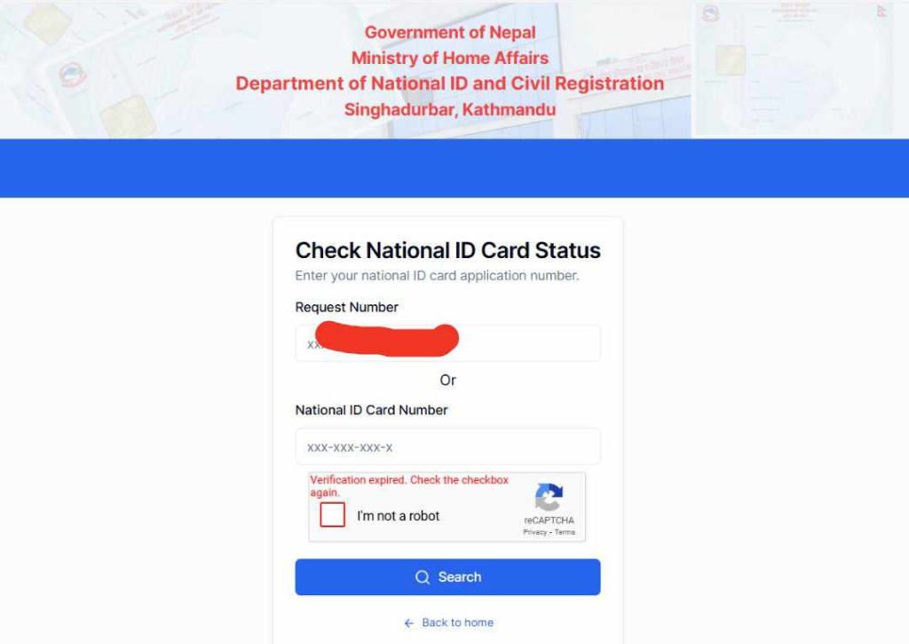 पहिले फोटो खिचिसकेका महानुभावहरुले प्राप्त गरेको निस्सा(कागज)मा १६ अंक भएको आवेदन नम्बरका आधारमा नै अब देखि राष्ट्रिय परिचयपत्र नम्बर घरबाट नै हेर्न सकिने व्यवस्था मिलाइएको हो ।