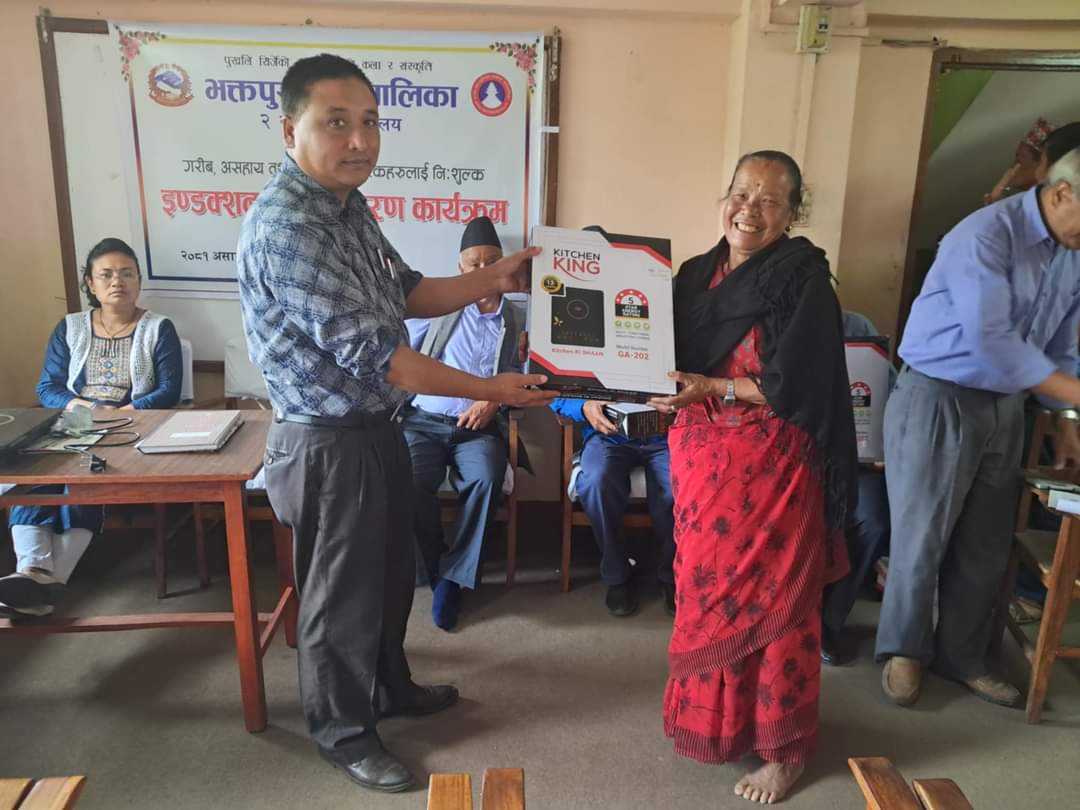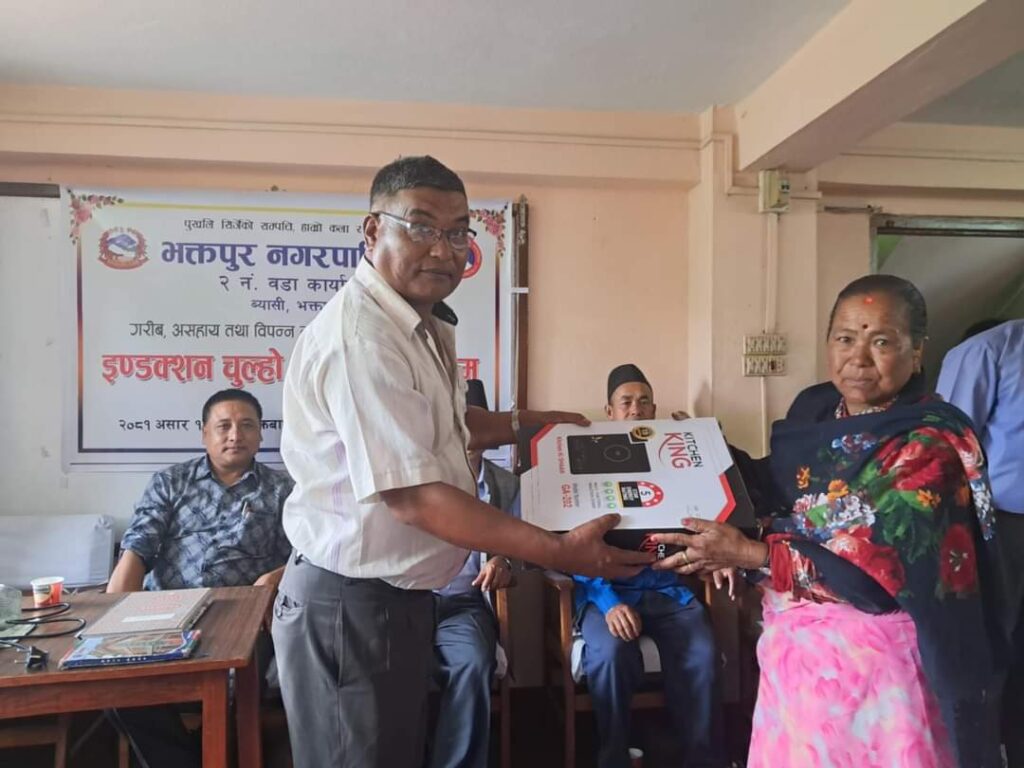 भक्तपुर नगरपालिका वडा नं. २ का स्थानीय गरिब, असहाय तथा विपन्न नागरिकहरुलाई निःशुल्क विद्युतीय चुल्हो (इन्डक्सन) वितरण कार्यक्रम शुक्रबार सम्पन्न भयो । सोही क्रममा भनपा वडा नं. २ का वडाध्यक्ष हरिप्रसाद बासुकलाले त्यसै वडाका ६० जना स्थानीयहरुलाई इन्डक्सन चुल्हो वितरण गर्नुभएको थियो ।