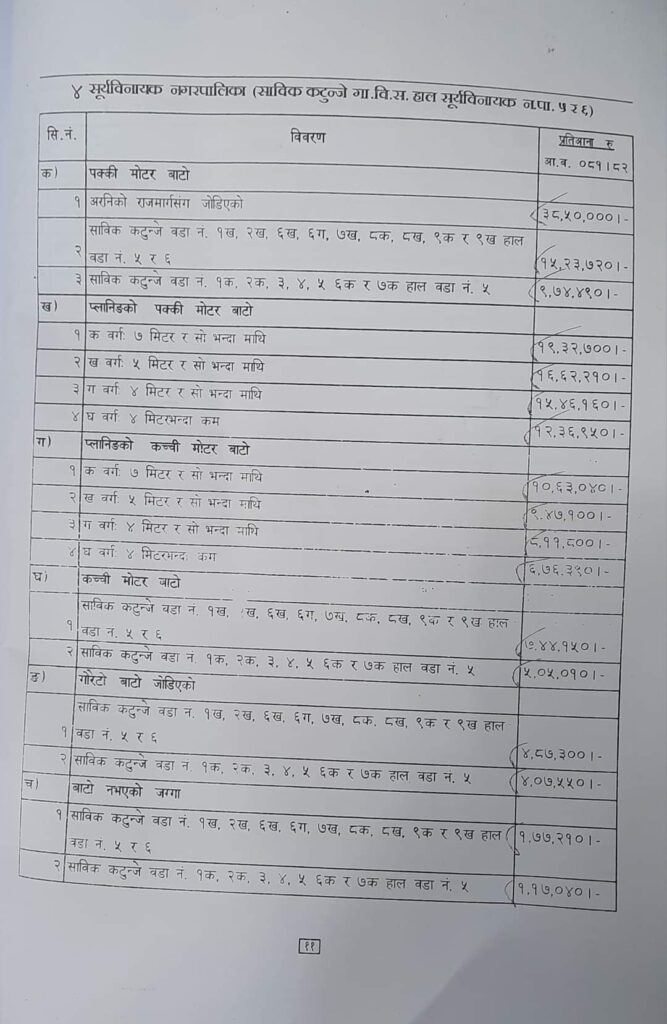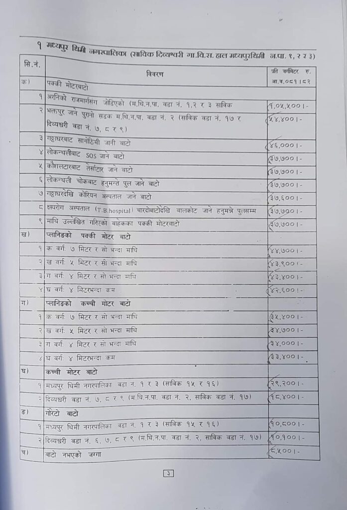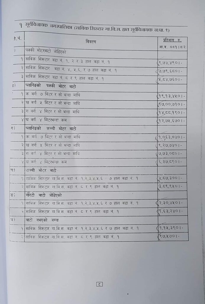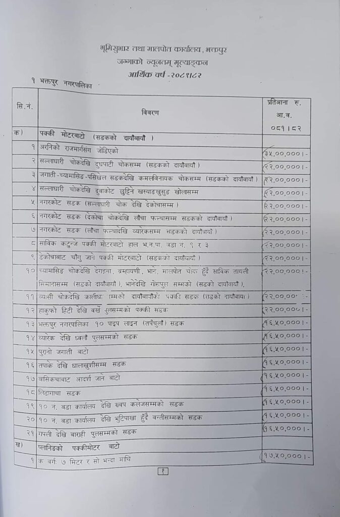 चाँगुनारायाण नगरपालिकाभक्तपुर नगरपालिकामध्यपुर थिमि नगरपालिकासुर्यविनायक नगरपालिका भक्तपुरकाे जग्गाको न्यूनत्तम मूल्यांकन आ.व. २०८१/८२, भमूिसुभार तथा मालपाेत कार्यालय, भक्तपुर 0 1410 Facebook Twitter Pinterest WhatsApp यो खबर पढेर तपाईलाई कस्तो महसुस भयो ? +1 1 +1 0 +1 0 +1 0 +1 0
