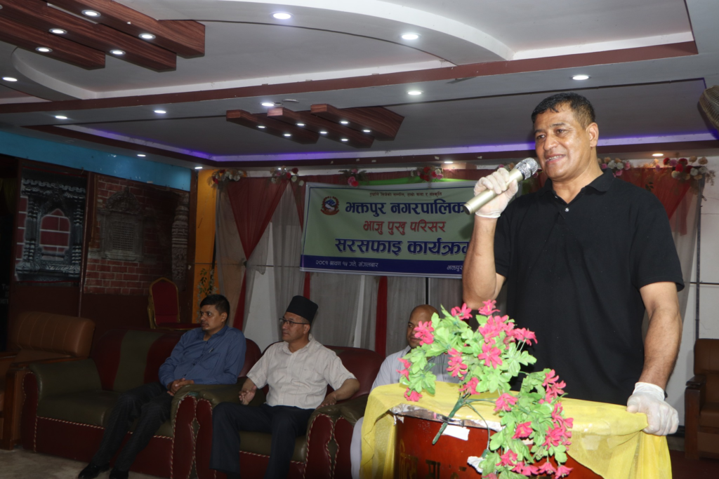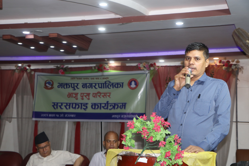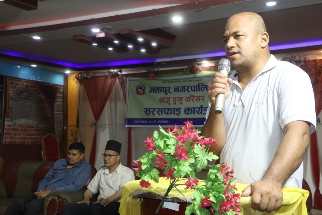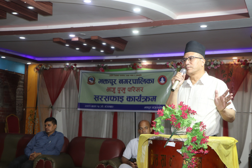 कार्यक्रममा बोल्नुहुदै भक्तपुर नगरपालिकाका प्रमुख सुनिल प्रजापतिले २०७४ सालदेखी थालनी गरिएको सफाइ कार्यक्रम कोभिडको समयमा रोकिएपछि पुनः पाक्षिक सरसफाइ कार्यक्रम सुरुवात गरेको बताउनुभयो । हरेक देशमा सम्पदा क्षेत्रमा समाज अनुकुल सरसफाइ कार्यक्रम हुने गरेको बताउनुहुदै प्रमुख प्रजापतिले नगरपालिकाले सफाइ अभियान प्रचार भन्दा पनि काममा बढी केन्द्रित गरेको बताउनुभयो । नगरपालिकाले जन सहभागितामा बढी जोड दिदै आइरहेको चर्चा गर्नुहुदै सफाइ अभियानलाई थप व्यवस्थित गर्दै जाने बताउनुभयो ।