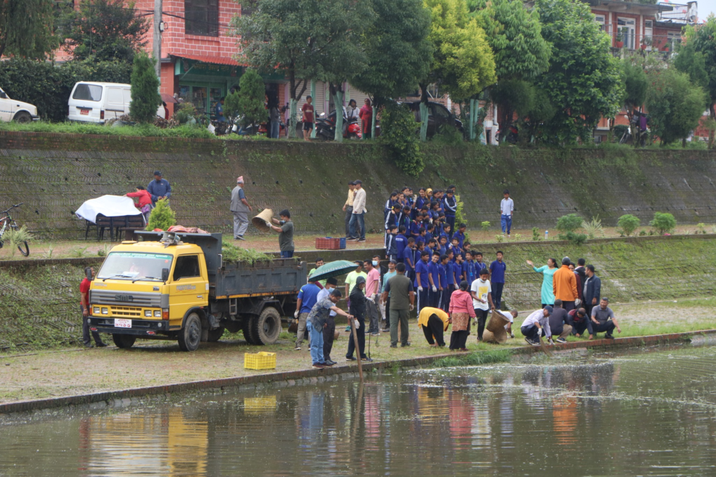 त्यस्तै वडा न १ का वडा अध्यक्ष श्यामकृष्ण खत्रीले विद्यालय वरपर क्षेत्रमा वृक्षरोपण गर्न वडा कार्यालयमा सम्पर्क गर्न अनुरोध गर्नुहुदै भाजुपोखरी परिसरमा व्यापारीहरुले सरसफाइमा विशेष ध्यान दिन आग्रह गर्नुभयो । पोखरी परिसरमा फोहोर फाल्नेलाई नगरपालिकाले कार्वाही समेत गरिने बताउनुभयो ।
