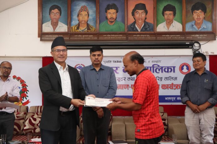भक्तपुर नगरपालिकाका नगर प्रमुख सुनिल प्रजापतिले हातमा सीप भएको व्यक्ति भोको बस्न नपर्ने बताउँदै योग्य र सक्षम व्यक्तिले सम्मानित जीवनयापन गर्न सक्ने बताउनुभयो । उक्त भनाइ भक्तपुर नगरपालिकाको आयोजनामा सञ्चालित हाउस वायरिङ र आधारभूत कम्प्युटर तालिमको प्रमाणपत्र वितरण कार्यक्रममा राख्नुभएको हो ।