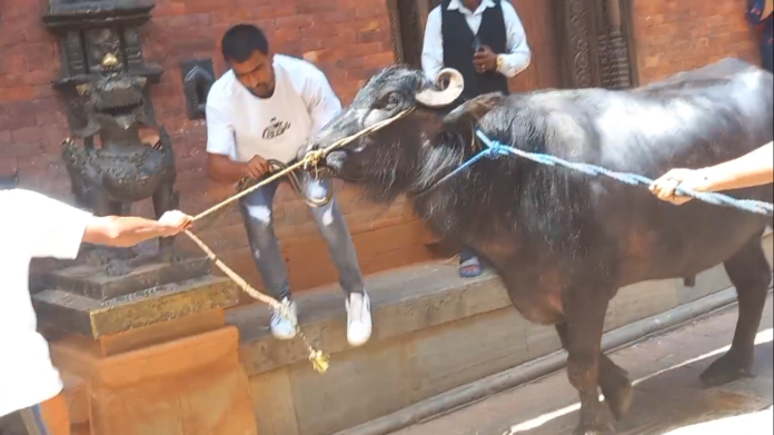 श्रावण २१, नेपालकै लामो जात्राको रूपमा मानिने नवदुर्गा देवगण जात्राको परम्पराअनुसार सोमबार बिहान नवदुर्गा द्योछेमा खम्ये (राँगो) भित्र्याइएको छ । उक्त खम्ये गठेमङगल पछि मन्दिरको मूल पुजारी नकींले विशेष पूजा गरेर खम्ये नवदुर्गा द्योछँमा भित्र्याउने चलन रहदै आएको छ ।