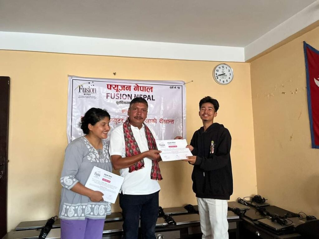 फ्युजन नेपालको कार्यकारी समिति सदस्य खड्ग प्रसाद गौतमबाट सम्पूर्ण दीक्षितहरूलाई प्रमाणपत्र वितरण गरिएको थियो ।