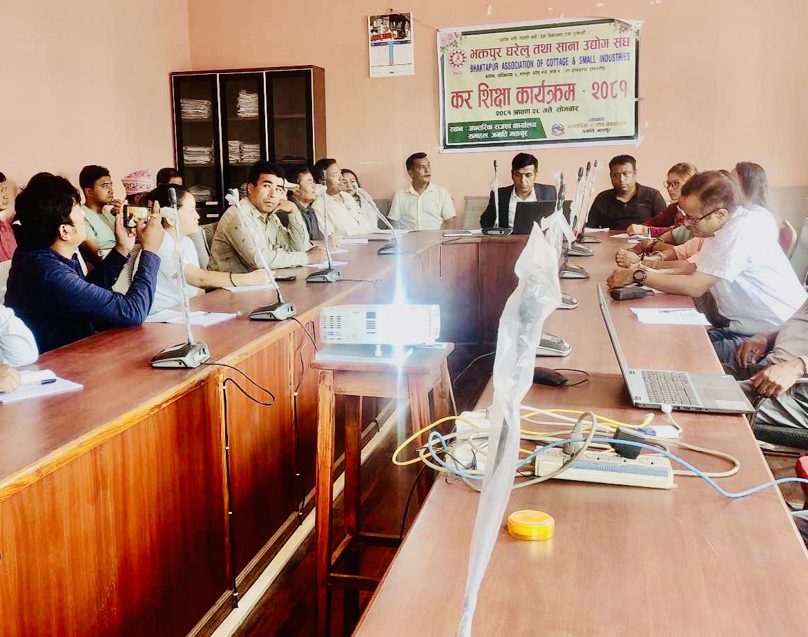 भक्तपुर, श्रावण २८ । भक्तपुर घरेलु तथा साना उद्योग संघको आयोजना र आन्तरिक राजश्व कार्यालय भक्तपुरको सहकार्यमा साना उद्यमी व्यवसायीहरुलाई लक्षित गरी कर शिक्षा कार्यक्रम सम्पन्न भयो ।