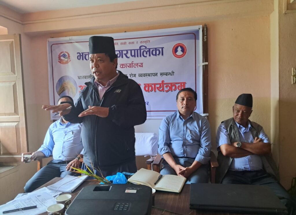 भक्तपुर, श्रावण २८ ।भक्तपुर नगरपालिका वडा नं. २ मा धानबालीमा लाग्ने रोग – किरा ब्यवस्थापन सम्बन्धी अभिमुखीकरण कार्यक्रम सम्पन्न भयो ।