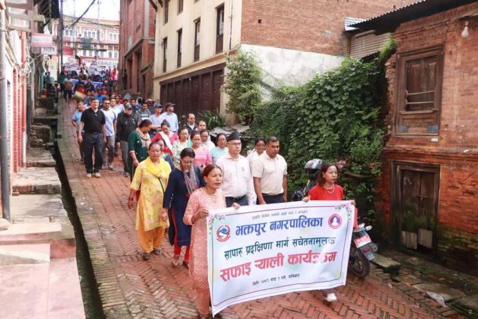 भक्तपुर नगरपालिकाका प्रमुख सुनिल प्रजापति र उपप्रमुख रजनी जोशीको नेतृत्वमा भक्तपुरको खौमाबाट सुरु भएको सरसफाई र्याली दत्तात्रयमा पुगी सभामा परिणत भएको थियो ।