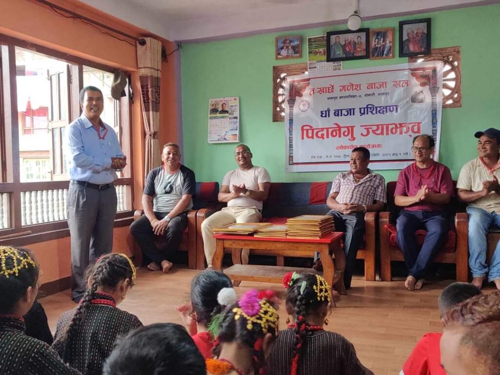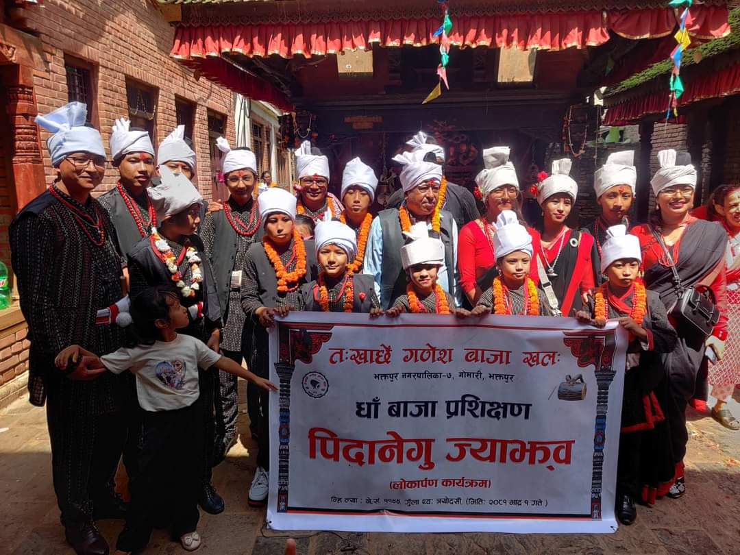 भक्तपुर, भदौ १ । भक्तपुर नगरपालिका वडा न ७ गोमारी स्थित त:खाछे गणेश बाजा खल:को आयोजनामा धाँ बाजा प्रशिक्षण लोकार्पण कार्यक्रम सम्पन्न भयो ।