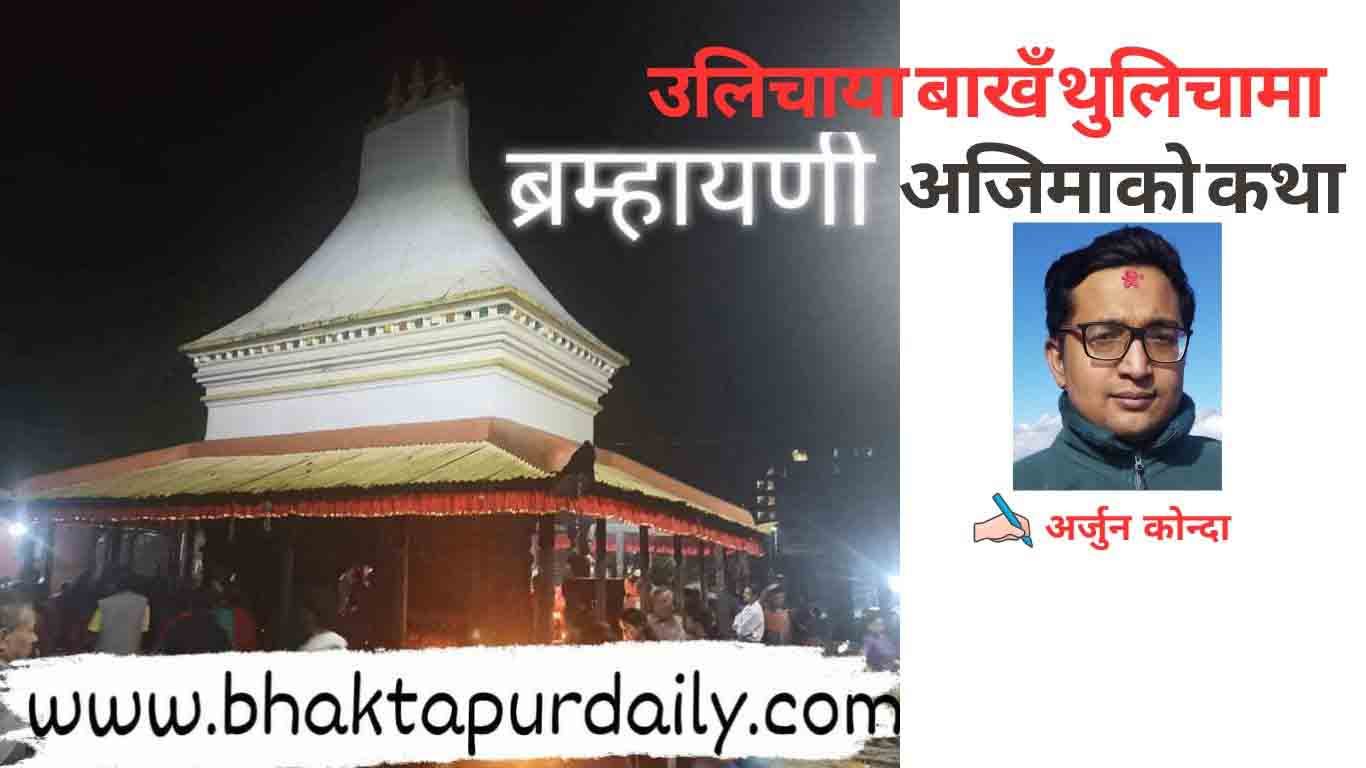 आमाले सुनाउनुभएको एउटा लोक कथा आज पनि मलाई याद छ । कथा हो, भक्तपुरको पुर्वमा अवस्थित ब्रम्हायणी मन्दिरको । आमाले भन्नुुहुन्थ्यो, धेरै वर्ष पहिले भक्तपुरमा एक गरिब महिला बस्थिन् अरे । मानी लिऔँ, उनको नाम थकु लक्ष्मी हो । सानै उमेरमा उनको विवाह भएको थियो । तर सन्तान जन्मेको केहि वर्षमै उनको श्रीमान बितेकाले उनी उमेर नपुग्दै दुधे बालकसहितको विधुवा बनिन् ।दुधे बालक लिएर के गर्थिन् थकुलक्ष्मी? उनीसँग आम्दानीको कुनै स्रोत थिएन । फेरि महिलालाई दिइने ज्याला कति नै हुन्थ्यो र ? काम नै मिलेको भएपनि दुधे बालकलाई छोडेर काममा जानु उनको लागि सजिलो थिएन । आमा भन्नु हुन्थ्यो, संसारमा सबैलाई स्थान छ। तर बच्चाको आमालाई स्थान हुँदैन । मेरो बच्चा बुद्धिले आम्दानीको स्रोत भनेको के हो भनेर सोध्थेँ । पैसा आउने ठाउ भनेर आमा जवाफ दिन्थिन् । म नबुझेपनि बुझेको स्वाङ पार्दै भन्थेँ, त्यसपछि के भयो, आमा? म आमाको छेउमा बसेर थकुलक्ष्मीको परिकल्पना गर्थेँ । सायद त्यो दुधे बालक मै पो थिएँ कि भनेर आमालाई सोध्थेँ । आमा मुन्टो बटार्दै कथा अगाडि बढाउनु हुन्थ्यो ।
