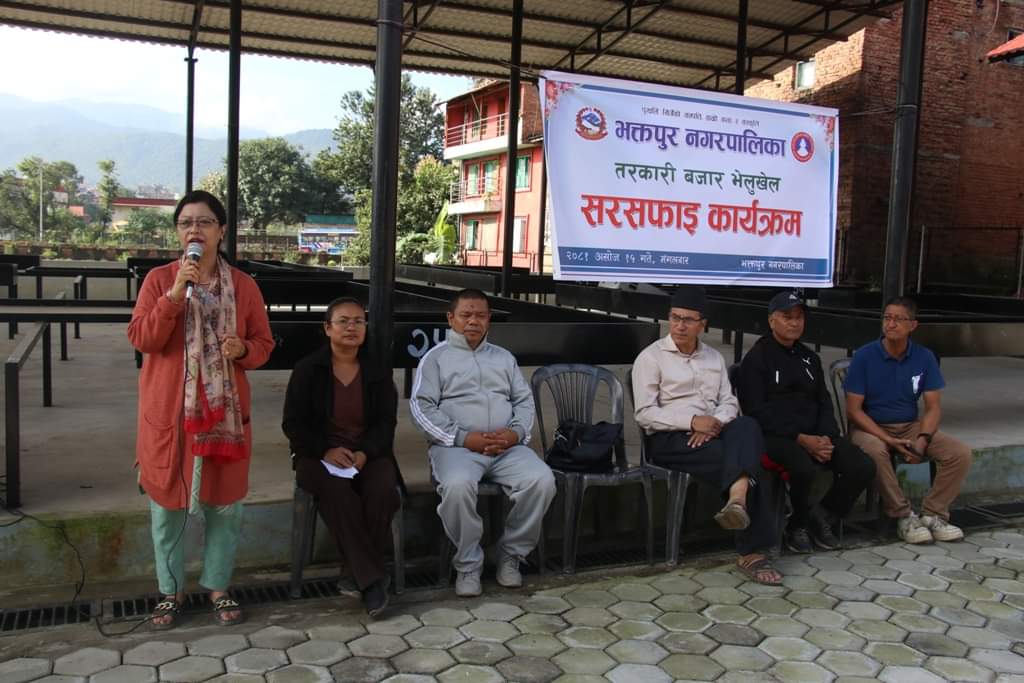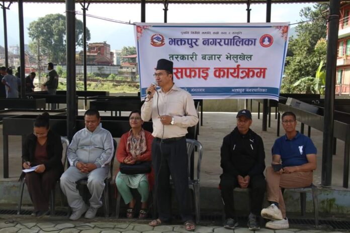 भक्तपुर नगरपालिकाको आयोजनामा भक्तपुर नपा वडा नं. ५ भेलुखेलस्थित तरकारी बजारमा आज सरसफाइ कार्यक्रम आयोजना गरिएको छ । भक्तपुर नगरपालिकाका जनप्रतिनिधि, कर्मचारी र त्यहाँ अवस्थित विद्यालयका शिक्षक विद्यार्थीका प्रतिनिधिहरुको उपस्थितिमा भएको उक्त सरसफाइमा तरकारी बजारसँगै रहेको चउरमा सरसफाइ गरिएको हो ।