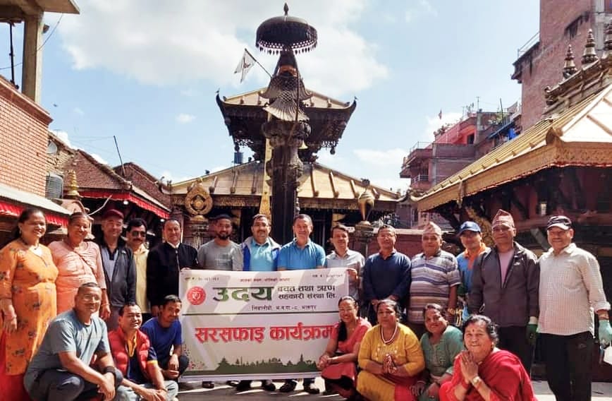 भक्तपुर नगरको एक सहकारी एक सम्पदा सरसफाइ नीति अनुरुप उदय बचत तथा ऋण सहकारी संस्था लिमिटेडको आयोजनामा भएको उक्त सरसफाइ कार्यक्रमलाई विगतमा झैं निरन्तरता दिने संस्थाका प्रबन्धक पूण्यराम गोसाईले बताउनुभयो ।