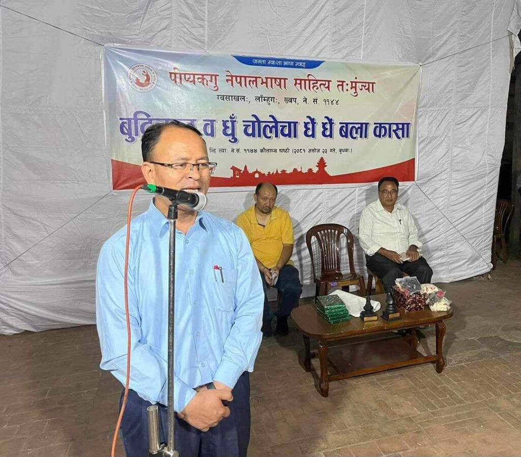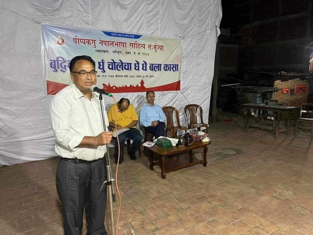 कार्यक्रममा नेमकिपा जिल्ला अध्यक्ष एवं प्रदेश सांसद सुरेन्द्रराज गोसाइले नेपालभाषा साहित तः मुज्या सबैको साझा मञ्च भएको बताउनुहुदै सांस्कृतिक जस्तै साहित्य तथा अध्ययन क्षेत्रमा पनि नयाँ पुस्ताले राम्रो गर्नुपर्ने बताउनु भयो।
