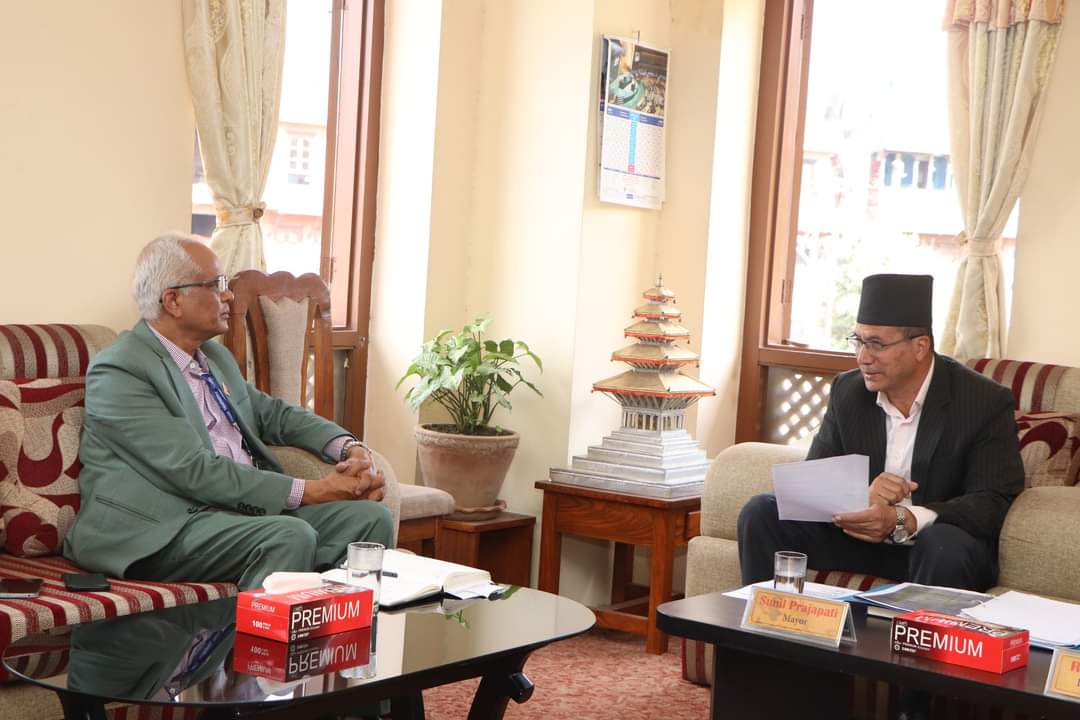भक्तपुर नगरपालिकाका प्रमुख सुनिल प्रजापति र त्रिभुवन विश्वविद्यालयका रजिष्ट्रार प्रा.डा. केदारप्रसाद रिजालबीच भाज्या पुखुको दक्षिणपट्टिको डिल खोल्ने र भक्तपुर क्याम्पसको सुरक्षा पर्खाल निर्माण गर्ने विषयमा आइतबार बैठक बस्यो ।