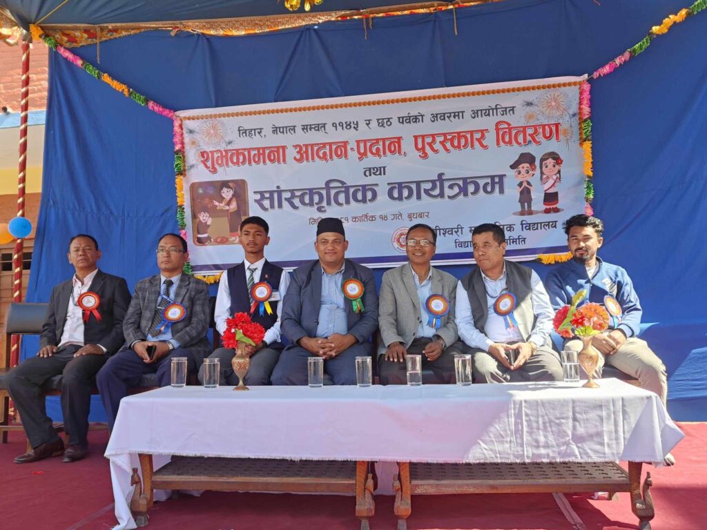 शुभकामना मन्तव्यकै क्रममा वागीश्वरी कलेजका प्राचार्य धनकुमार श्रेष्ठले तिहार पाँच दिन मनाएजस्तै हाम्रो शिक्षाको पनि विद्यालयदेखि उच्च शिक्षासम्म पा“चओटै चरण रहेको बताउदै विद्यार्थीहरुले प्रत्येक तहलाई आफ्नो उद्देश्यअनुसार प्रतिफल हासिल गर्न कडा मिहिनेत गर्नुपर्छ भन्नुभयो ।