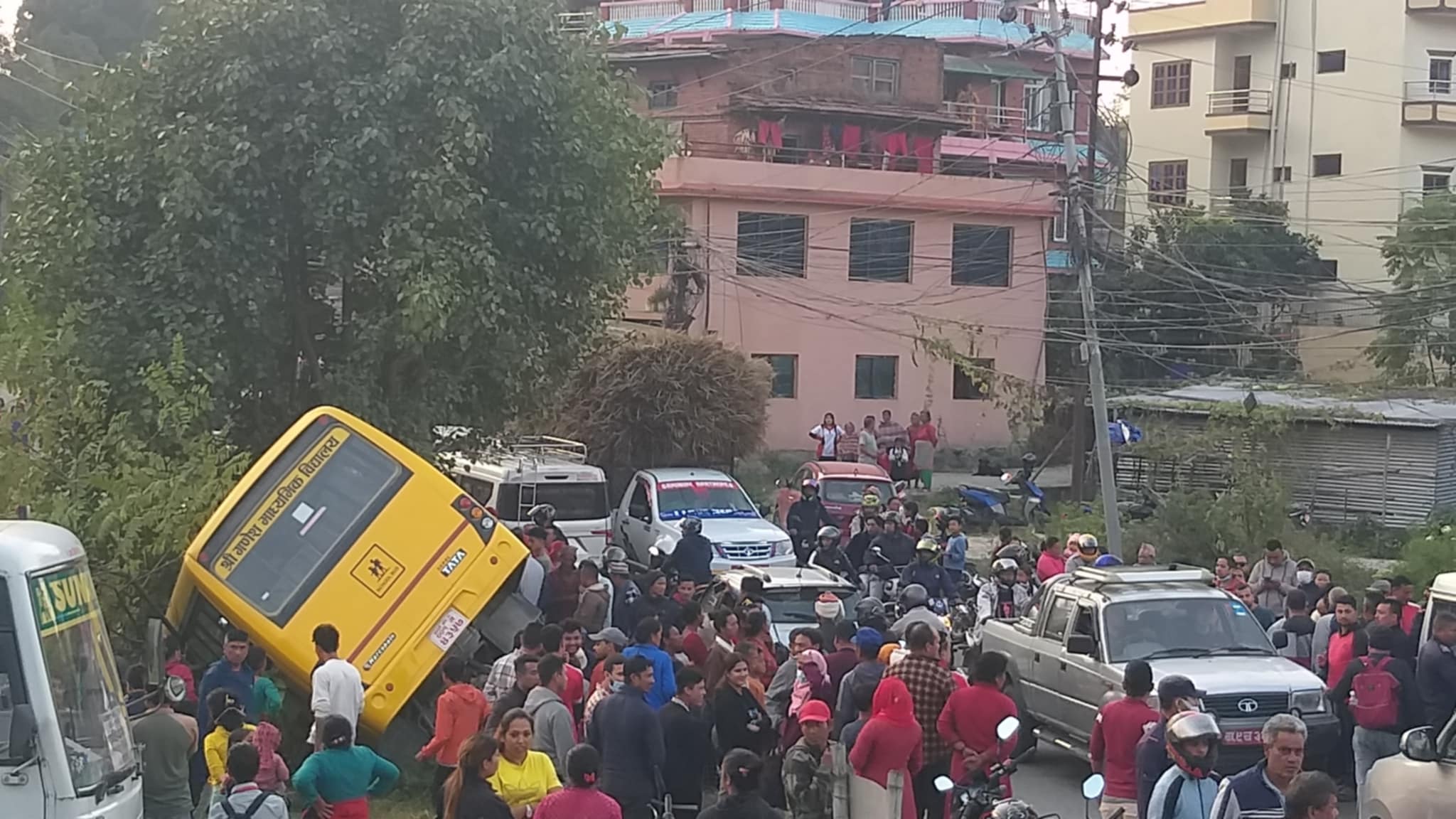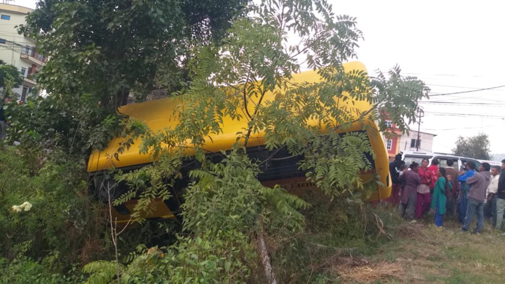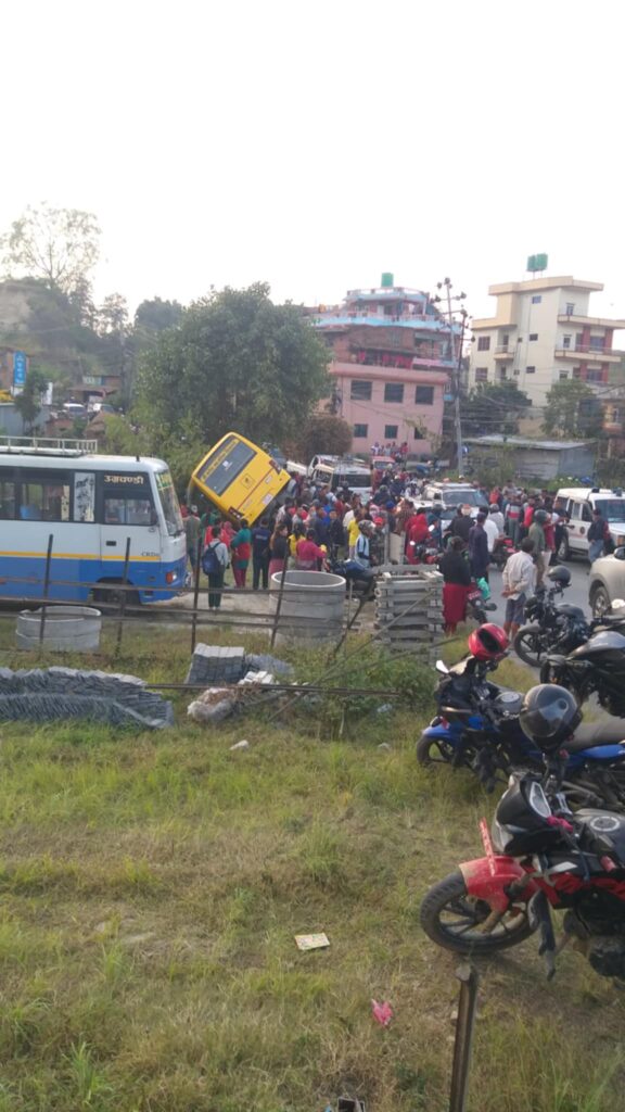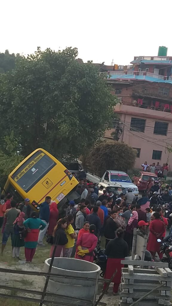 चाँगुनारायण नगरपालिका वडा न ९ स्थित गणेश मा.वि को स्कुल बस दुर्घटना भएको छ । दिउँसो ३:४० बजे तिर दुर्घटना भएको स्थानीयवासीहरुको भनाइ रहेको छ । घटनाबारे विस्तृत विवरण आउन बाकी छ ।
