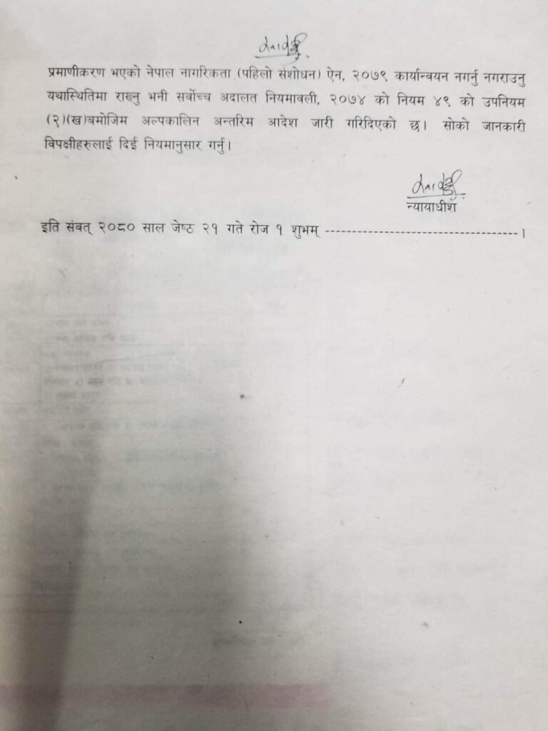 समाचार यस्तो छ राष्ट्रपतिद्वारा प्रमाणीकरण गरिएको नागरिकता विधेयक कार्यान्वयन नगर्न सर्वोच्च अदालतले दिएको अल्पकालीन अन्तरिम आदेश 0 119 Facebook Twitter Pinterest WhatsApp यो खबर पढेर तपाईलाई कस्तो महसुस भयो ? +1 0 +1 0 +1 0 +1 0 +1 0