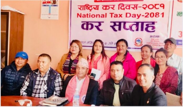 राष्ट्रिय कर दिवसको उपलक्ष्यमा आन्तरिक राजश्व कार्यालयको आयोजना तथा भक्तपुर घरेलु तथा साना उद्योग संघको सहकार्यमा कर शिक्षा सम्बन्धि अन्तरक्रिया कार्यक्रम सम्पन भयो । सो अवसरमा संघका अध्यक्ष प्रेमकृष्ण खर्बुजाले साना करदाताहरुलाई परेको विभिन्न समस्याहरुबारे अवगत गराउँदै विगतमा पनि संघको पहलमा साना व्यवशायीहरुको समस्या समाधानको लागि सहजीकरण गरिदिएको स्मरण गर्दै यो बर्षको राजश्व कार्यालयको कर प्रणालिमा विगतमा राजश्व तिरेका उद्यमी व्यवशायीहरुको कर बक्यौता देखाएको बारे समयमै सम्बोधन गर्न अनुरोध गर्नुभयो । साथै यो बर्ष सघले हालसम्म ३०० भन्दा बढी उद्यमी व्यवशायीहरुको कर तिर्न ,नयाँ प्यान दर्ता गर्न र उद्यमीको कर खारेज गर्न सहजीकरण गरिदिएको जानकारी गराउँदै यसरी नै संघ सगको सहकार्यमा समय समयमा कर सचेतना कार्यक्रम गर्न अनुरोध गर्नुभयो ।