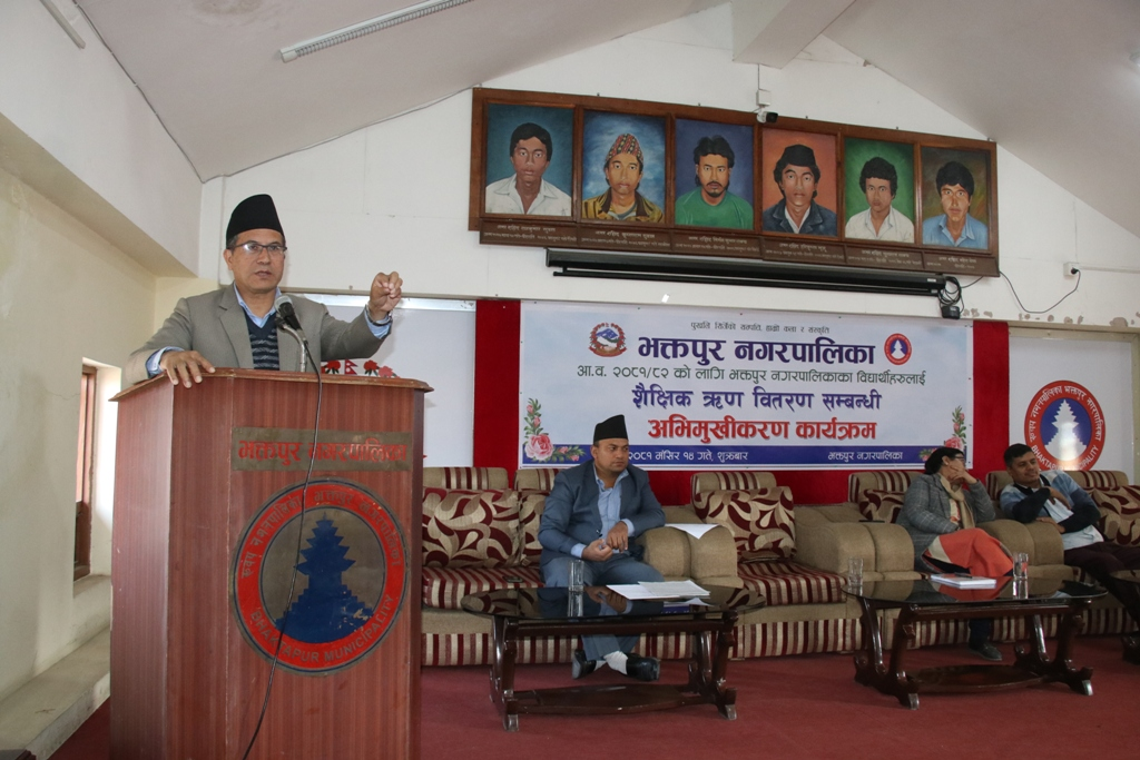 भक्तपुर नगरपालिकाले आर्थिक वर्ष २०८१।८२ को लागि १५१ जना नगरबासी विद्यार्थीहरूलाई शैक्षिक ऋण उपलब्ध गराउन स्वीकृत गरेको छ । सोही सन्दर्भमा भक्तपुर नगरपालिकाको आयोजनामा शैक्षिक ऋण वितरणसम्बन्धी अभिमुखीकरण कार्यक्रम मंगलबार सम्पन्न भयो ।