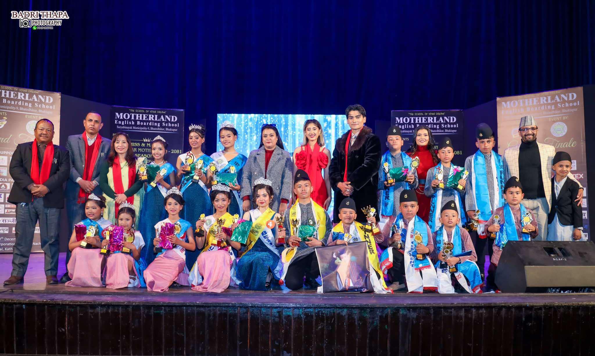 भक्तपुर, पुष ५ । सुर्यविनायक नगरपालिका वडा नं ९ मा अवस्थित मदरल्याण्ड स्कुलको विशेष प्रस्तुति मिस एण्ड मास्टर लिटिल स्टार मदरल्याण्ड-२०८१ सिजन २ सम्पन्न भएको छ । करिब २१ दिनको विशेष प्रशिक्षण पश्चात पौष ५ गते शुक्रबार साँस्कृतिक संस्थान(राष्ट्रिय नाचघर) मा भएको फाइनल प्रतियोगितामा जुनियर तर्फ जेशिका श्रेष्ठ मिस लिटिल स्टार मदरल्याण्ड-२०८१ घोषित भईन भने मास्टर लिटिल स्टार मदरल्याण्ड-२०८१ न्यूरोन लोहला भएका छन् । साथै सिनीयर तर्फ ह्रृदायणी सिलवाल मिस लिटिल स्टार मदरल्याण्ड-२०८१ र अप्रेश आलेमगर मास्टर लिटिल स्टार मदरल्याण्ड-२०८१ भइ विजेता भएका छन् ।