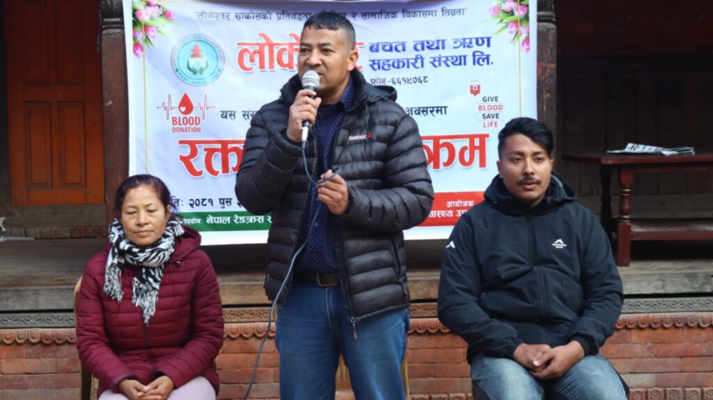 भक्तपुर, पुष २० । लोकेश्वर बचत तथा ऋण सहकारी संस्था लि.को २० औं स्थापना दिवसको अवसरमा स्वास्थ्य उपसमितिको आयोजनामा रक्तदान कार्यक्रम भनपा–२ स्थित इताछें गणेश मन्दिर परिसरमा सम्पन्न भयो ।