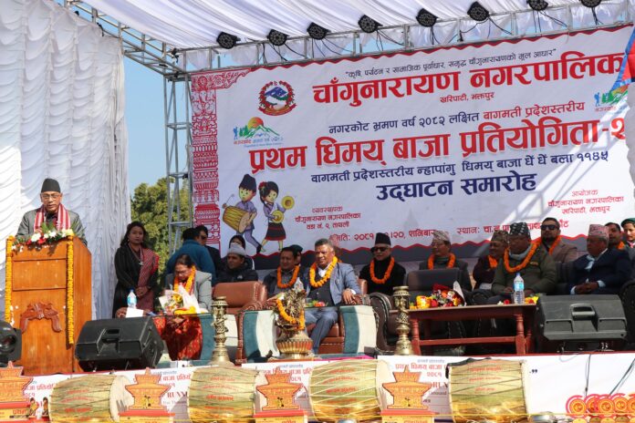 भक्तपुर, पुष २०। चाँगुनारायण नगरपालिकाको आयोजनामा शनिबार भएको वाग्मती प्रदेशस्तरीय धिमे बाजा प्रतियोगिताको उद्घाटन नेपाल मजदुर किसान पार्टीका सचिव एवं सङ्घीय सांसद प्रेम सुवालले गर्नुभएको छ ।