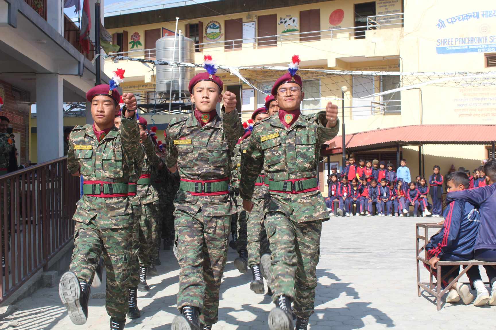 भक्तपुर, माघ ११ । चाँगुनारायण नगरपालिका वडा न ८ सुडाल स्थित श्री पञ्चकन्या माध्यमिक विद्यालयमा एन.सी.सी. ५० औं व्याचमा विद्यालयबाट सहभागी भएका ३४ जना क्याडेटहरुको आज विद्यालयको तर्फबाट विद्यालय प्राङ्गणमा दिक्षान्त समारोह कार्यक्रम सम्पन्न भयो ।